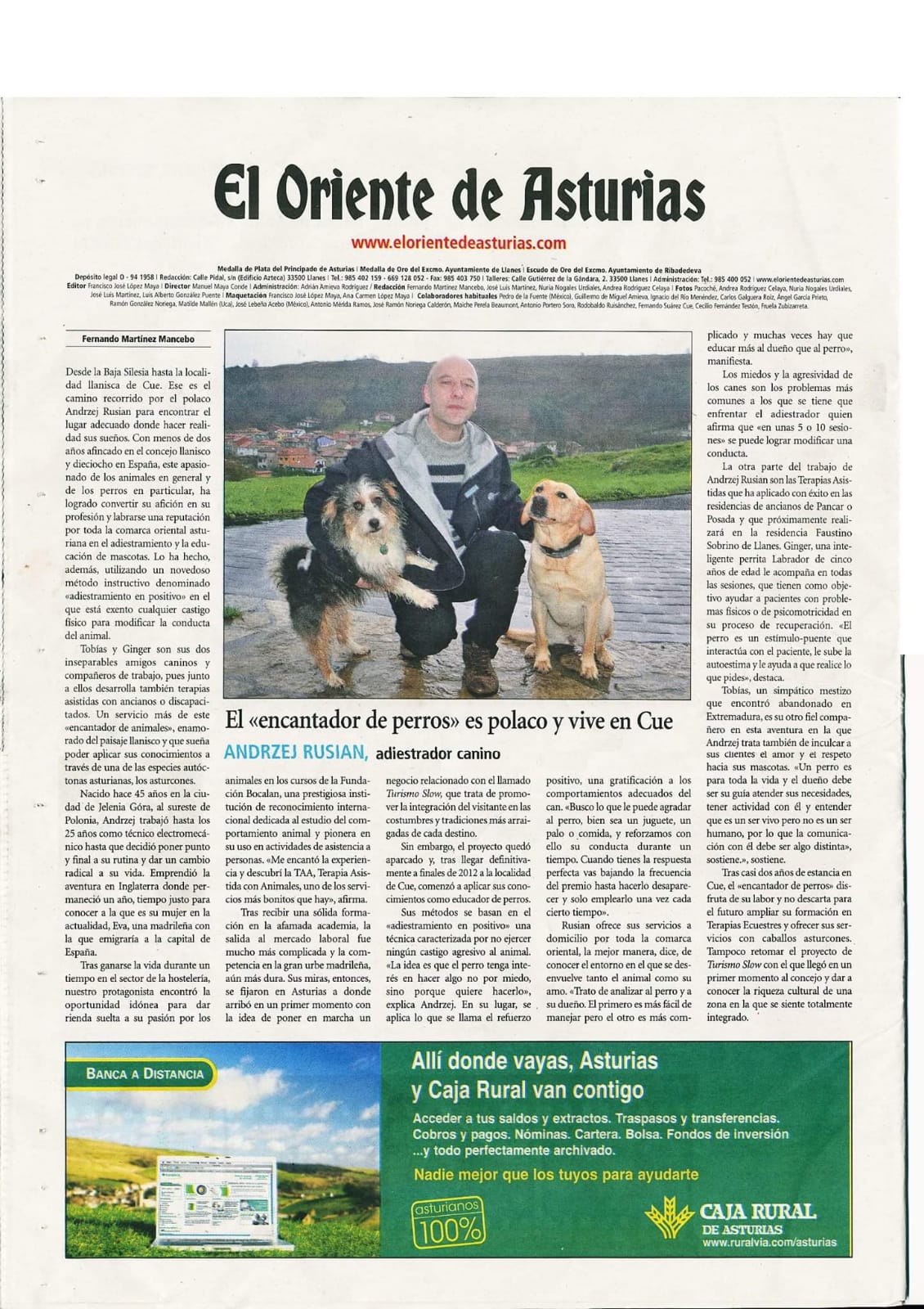 Soy Andrzej Rusian, educador canino en positivo y técnico en Terapia y Actividades Asistidas con animales. Llevo más de 15 años trabajando en este sector, ayudando a personas y perros a construir una relación basada en el respeto, la comunicación y la confianza. Me formé en la Fundación Bocalán y desde entonces aplico un enfoque amable, motivador y personalizado que adapto a cada caso. Hoy sigo aprendiendo cada día junto a mis perros, especialmente Chanel, que me acompaña en esta labor.